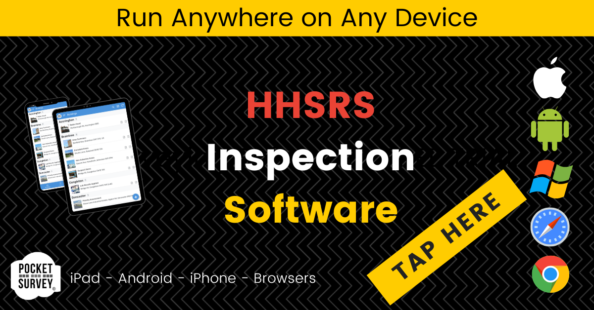 PocketSurvey Mobile HHSRS Inspection Software provides a comprehensive solution for HHSRS inspections, including defect identification, compliance assessments and photographic evidence.